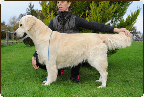 Ghost est l'un des bébés de mon épouse, vu qu'il adore les câlins il est plutôt bien servi... et puis à partir de là tout va très bien pour lui. Il n'est pas un grand volontaire au travail, mon Dieu il s'exécute certe assez bien mais il préfère la cuisine avec ses odeurs et il n'est jamais loin de la cuisinière surtout quand sur celle-ci il mijote un bon plat... Il est un golden adorable en famille. |