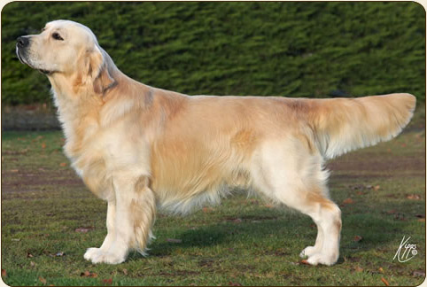 Grisham est un jeune mâle à la robe gold avec une excellente texture, il est remarquablement construit fruit de son patrimoine génétique tout aussi remarquable. Son caractère est excellent, son comportement avec les adultes et les enfants n'est que douceur et câlins assurés. |