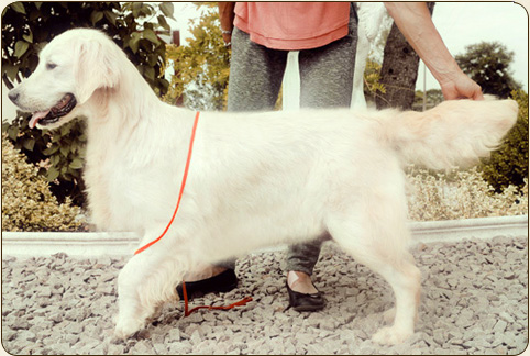 Jolie Flower à cet aspect féminin d'une déesse. Sa construction est faite sur l' élégance et la douceur, des qualités qu'elle doit à ses parents. Son tempérament est calme et obeissant, son éveil et ses élans ressemblent beaucoup à ceux de son papa ! |
