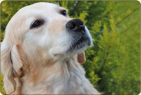Son surnom est Tendresse, câlins assurés à toutes les personnes du domaine et aux étrangers, Famous Girl est toujours dans des jambes...elle adore cependant nager, gambader dans la propriété et surveille avec une grande attention les hérons près de l'étang... sa tête est typique du beau Golden Retriever ! |